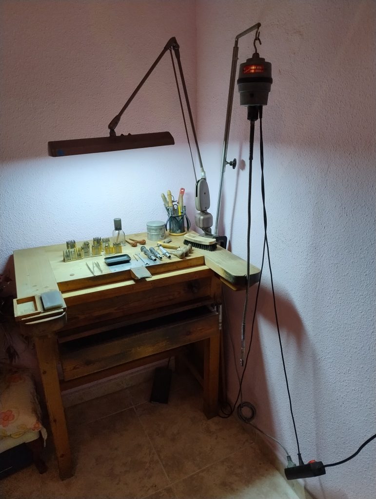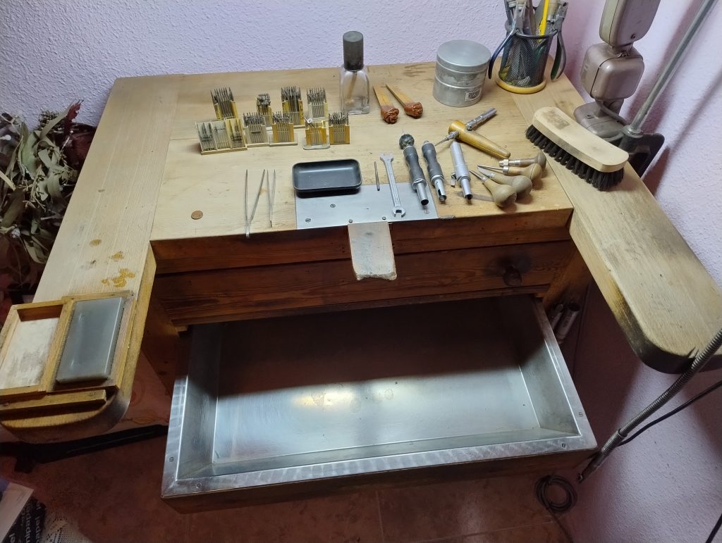 Taula de engastador amb complements. És ven tot junt per jubilació.